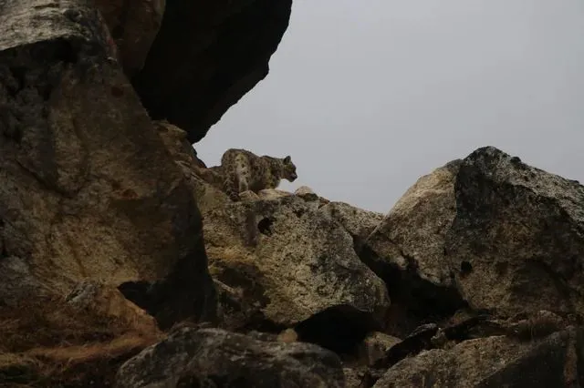The first thing you should do is remain calm and avoid any movements so that you will not scare the snow leopard. Try to maintain a safe distance and never try to photograph at close range for safety.